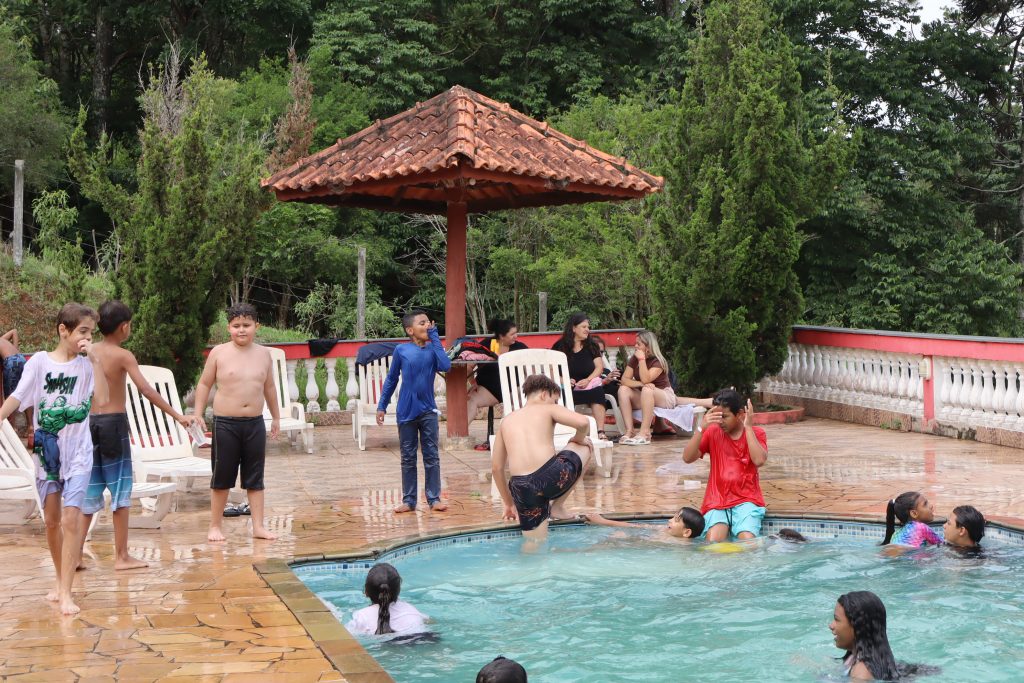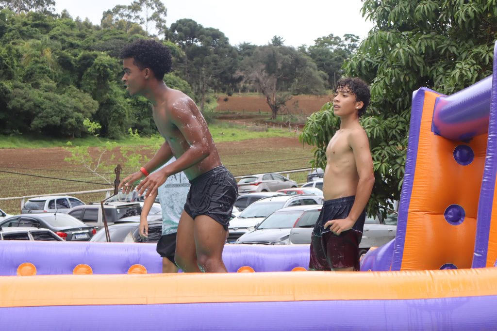 Mesmo com a chuva leve, a animação não diminuiu. As crianças continuaram aproveitando a piscina, enquanto os adultos curtiram o chopp à vontade e registraram momentos de diversão na plataforma de vídeo 360°, uma das atrações mais concorridas do dia.