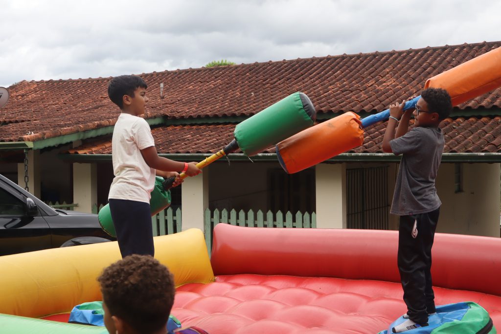 As brincadeiras também garantiram interação e boas risadas entre os adultos. Atividades como a tradicional Dança das Cadeiras e o Adivinhe o Peso renderam prêmios em PIX aos participantes, reforçando o clima descontraído da confraternização.